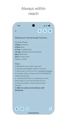 Myšlienky prichádzajú a odchádzajú ako vánok. Nenechajte si ujsť žiadnu! S **Google Keep** získate dokonalého digitálneho spoločníka na zachytávanie každého nápadu, úlohy či inšpirácie. Či už ide o rýchlu textovú poznámku, podrobný zoznam úloh, vizuálnu spomienku vo forme fotografie, alebo dokonca hlasovú správu, ktorú **Google Keep** premení na písaný text – vaše myšlienky sú okamžite uložené a pripravené na neskoršie použitie. Vďaka intuitívnym miniaplikáciám na telefóne a tablete, ako aj špeciálnym dlaždiciam pre Wear OS, môžete svoje nápady zaznamenať bleskovo, bez ohľadu na to, kde sa práve nachádzate.