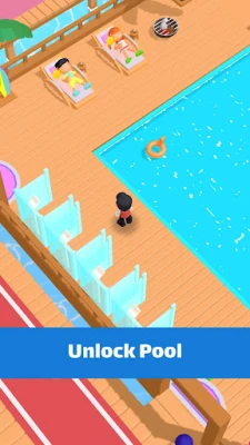 Možnosti rozšírenia sú prakticky neobmedzené. Pridajte nové izby pre rastúci počet hostí, najmite ďalších pracovníkov pre plynulý chod prevádzky a zamestnajte masérov, ktorí ponúknu hosťom maximálnu relaxáciu. Vaši recepční sa stanú tvárou vašej značky, vítajúcich hostí s prísľubom nezabudnuteľného pobytu. Odomknite luxusné vybavenie ako osviežujúci bazén, špeciálne masážne salóny a morskú zábavu pre dobrodružné povahy. Každá nová atrakcia prehlbuje zážitok hostí a láka ich naplno využiť ponuku vášho rezortu. Vizuálne je táto hra pastvou pre zmysly – sýta a farebná grafika dokonale zachytáva spojenie luxusu a pohody.