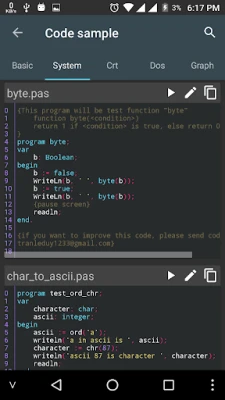 Objavte Pascal interpretér pre Android. Učte sa a precvičujte si programovanie v jazyku Pascal priamo na vašom mobilnom zariadení. Vďaka tejto aplikácii môžete kedykoľvek a kdekoľvek rozvíjať svoje zručnosti bez potreby počítača.